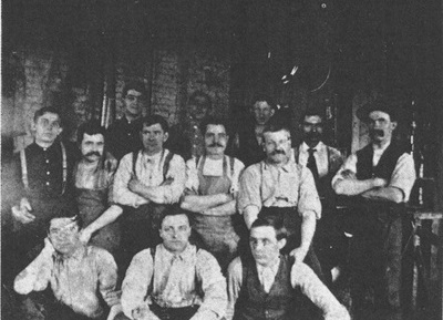 Another worker is Eugene Weed, back row, third from the left, although it’s hard to see him because the background is so dark. I’ll see what I can do with that in PhotoShop. The foreman-looking guy with his arms crossed is probably Victor Kraske who came to Gibson from the Barrows/Waldo company in Saginaw around 1907. Jack French has seen him (read the “Rumors” blog entry).