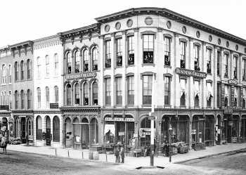 Before Orville arrived in Kalamazoo, most lectures, plays and concerts were given at private homes, local shops and downtown businesses. These shops were small, old two story wooden buildings along Main Street. Many had rooms large enough to set up a performance area and to accommodate a small audience. But even before Kalamazoo passed a village ordinance in 1869 against building any new wooden structures, the row of these small, two story buildings on the south side of Main Street between Burdick and Farmer’s Alley, where being replaced with three story brick Italianate style blocks (or buildings).